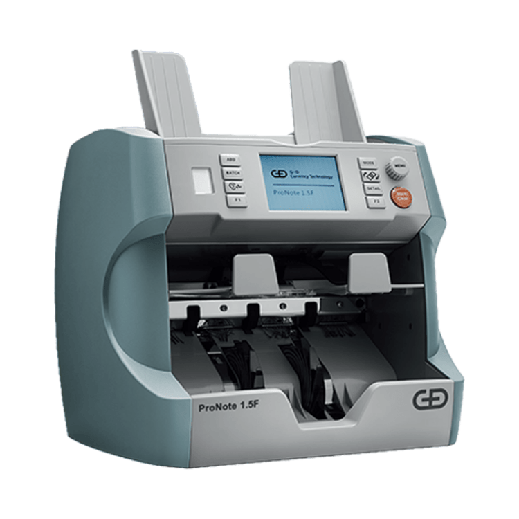 Squaring the circle? Not with the ProNote 1.5F. Featuring cutting-edge technology, exceptional ease of use, unwavering reliability, and a processing speed of up to 1,300 banknotes per minute, this system stands out as a top choice among compact table-top machines.